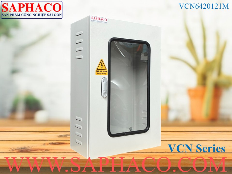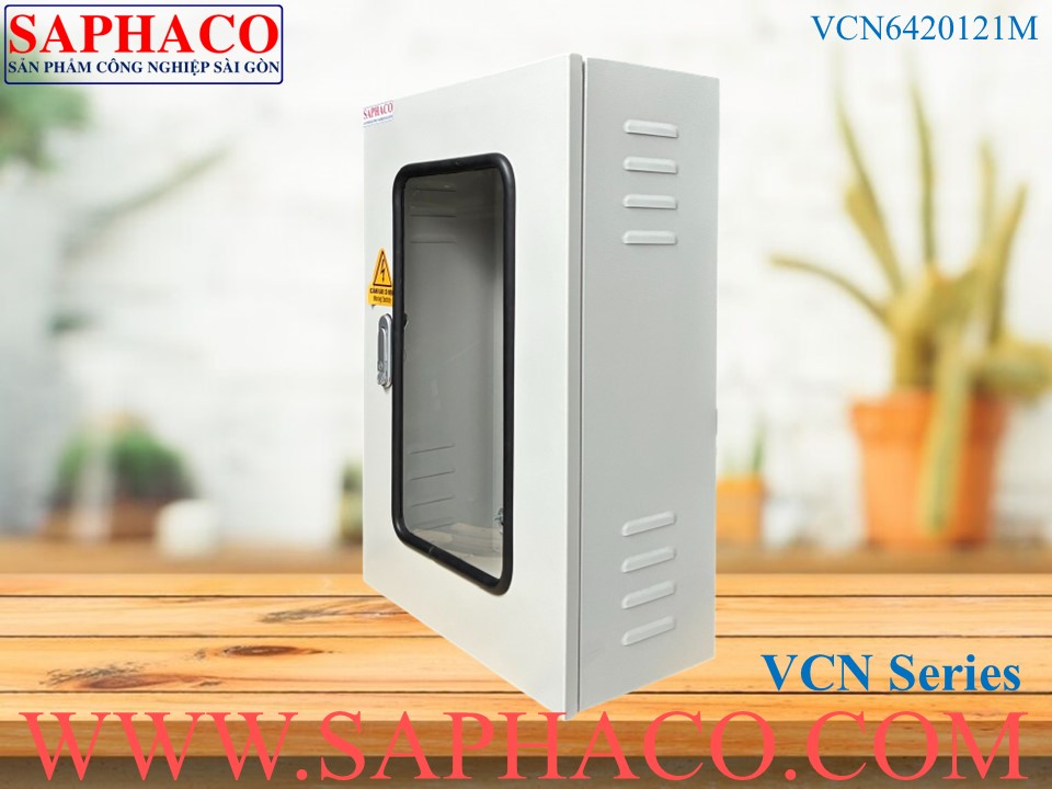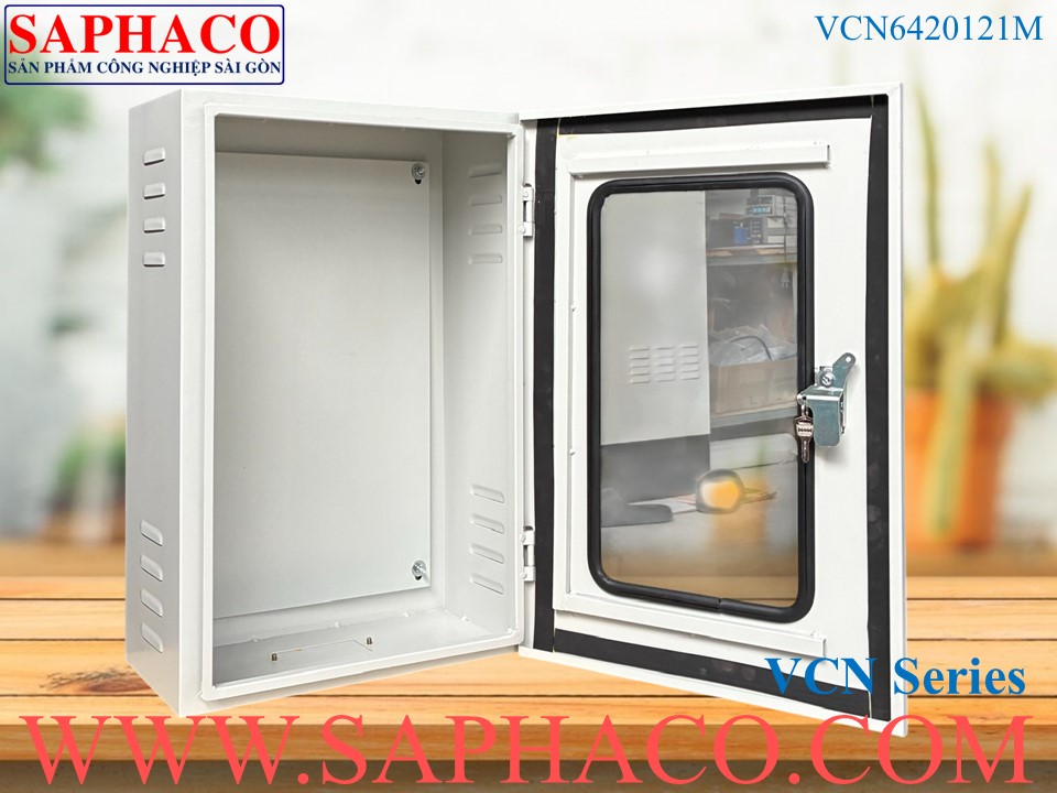Vỏ tủ điện công nghiệp H600 x W400 x D200 x T1.2 MICA – VCN6420121M là vỏ tủ điện trong nhà, một lớp cửa làm từ thép sơn tĩnh điện, cửa có mica.